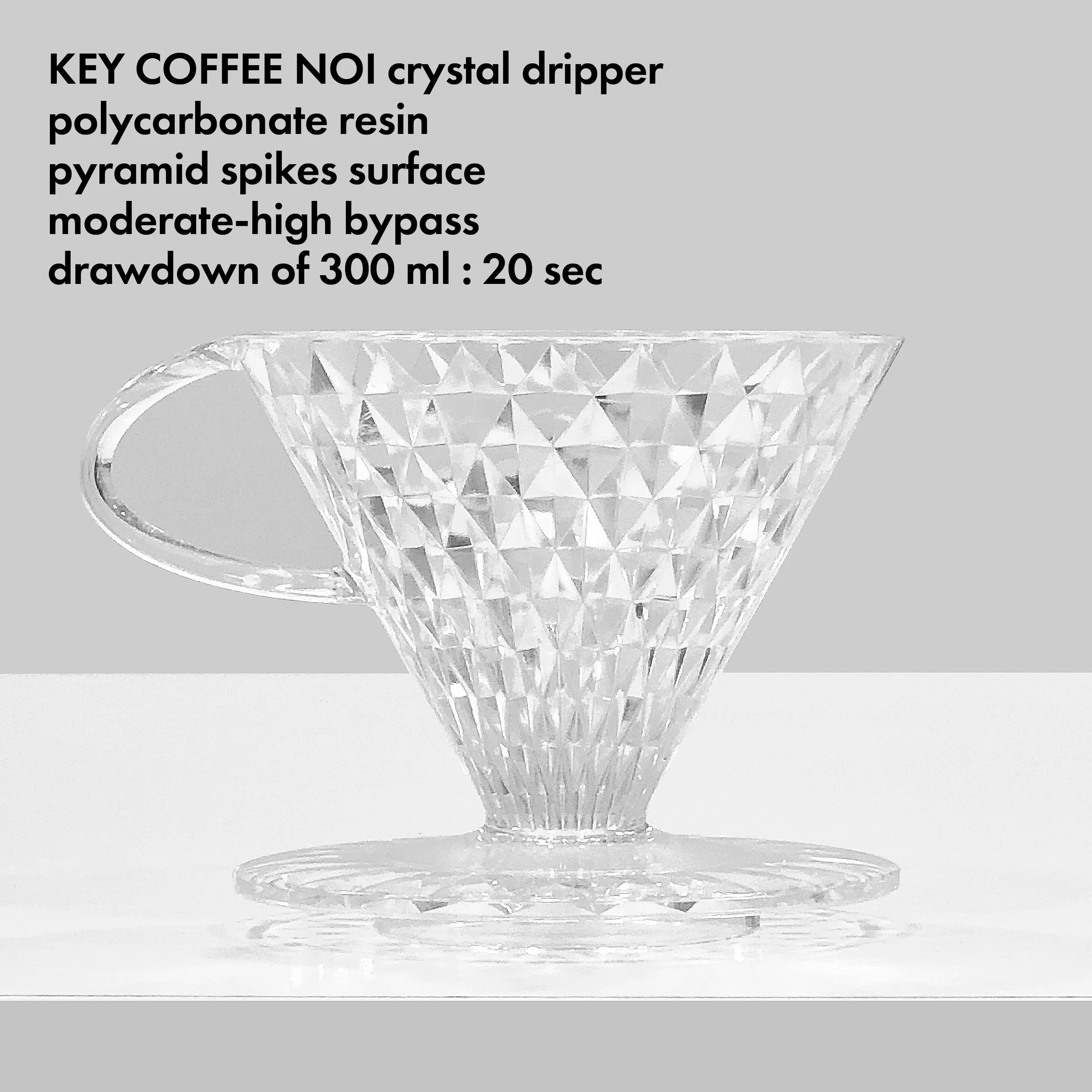 Image 1 and 2 : Noi crystal dripper by Key Coffee, my favorite of all time. It costs only 1,200 yen but is very durable. It is made of polycarbonate resin, exceptionally lightweight and I dare say that it is truly odorless after years of use.