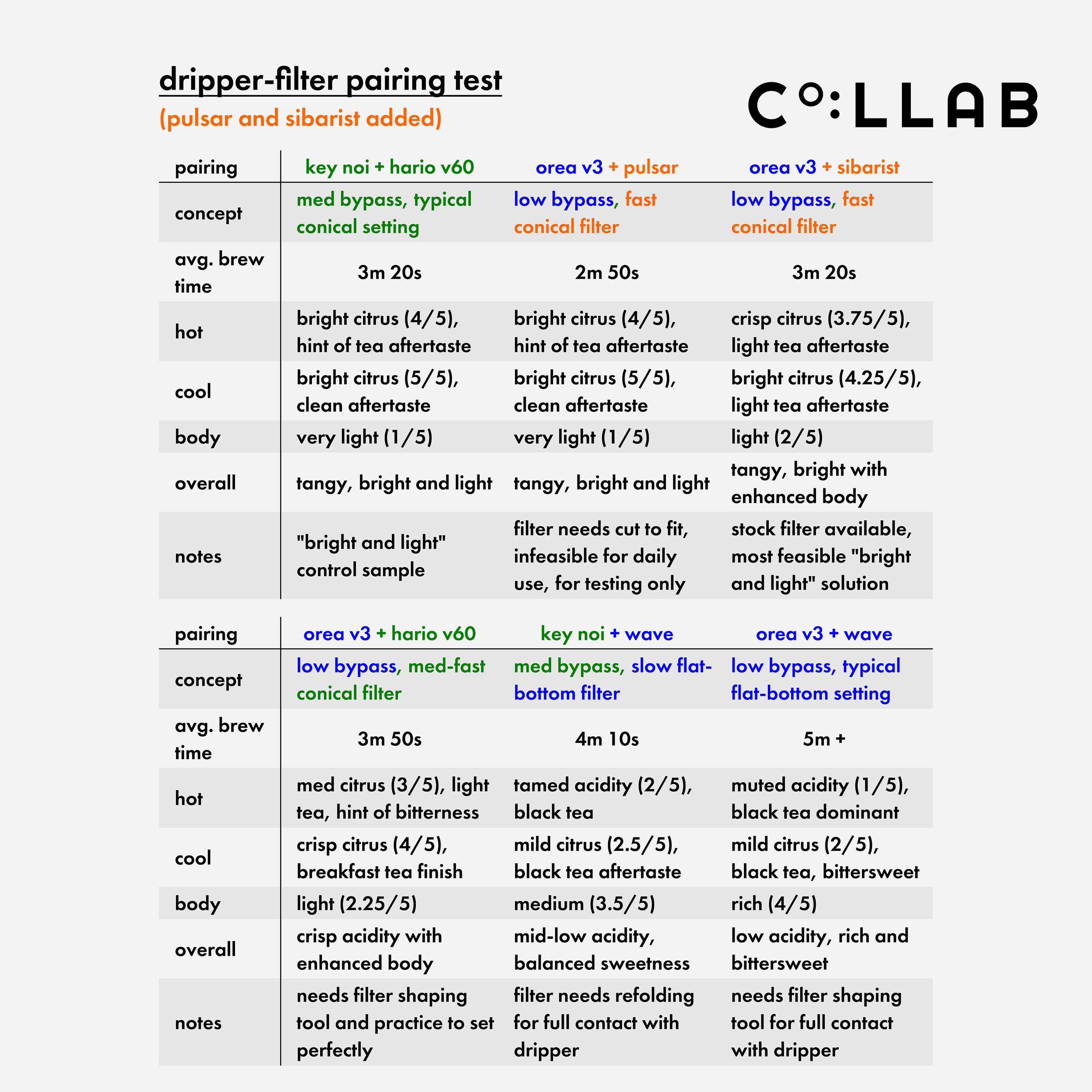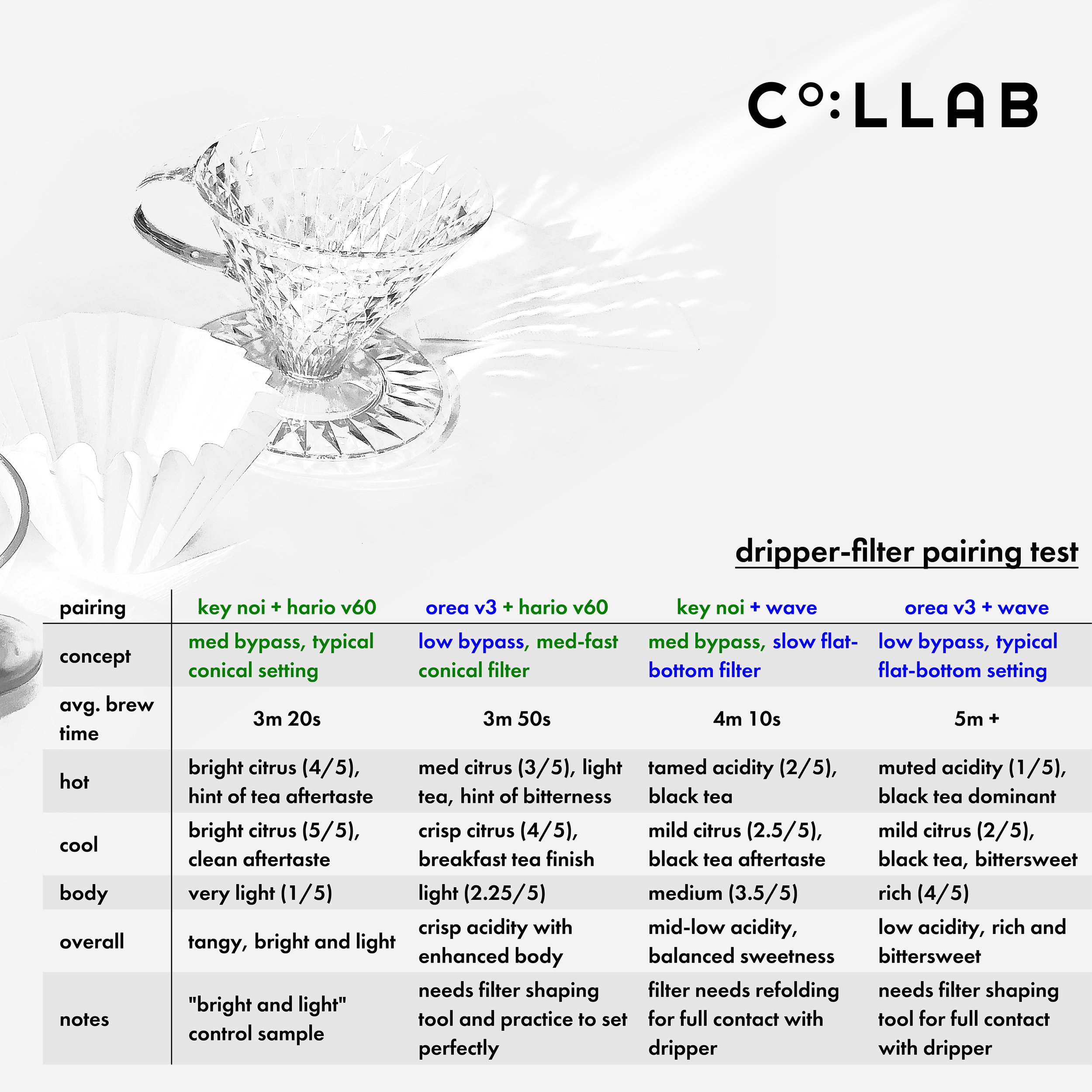 Filter has great influence on flavor balance, in my opinion, more than brew ratio and pouring style. As learnt from filter tests I did in 2022: "same coffee could taste unlike the same coffee", I decided to explore the "orea v3 with hario v60 paper" combination.