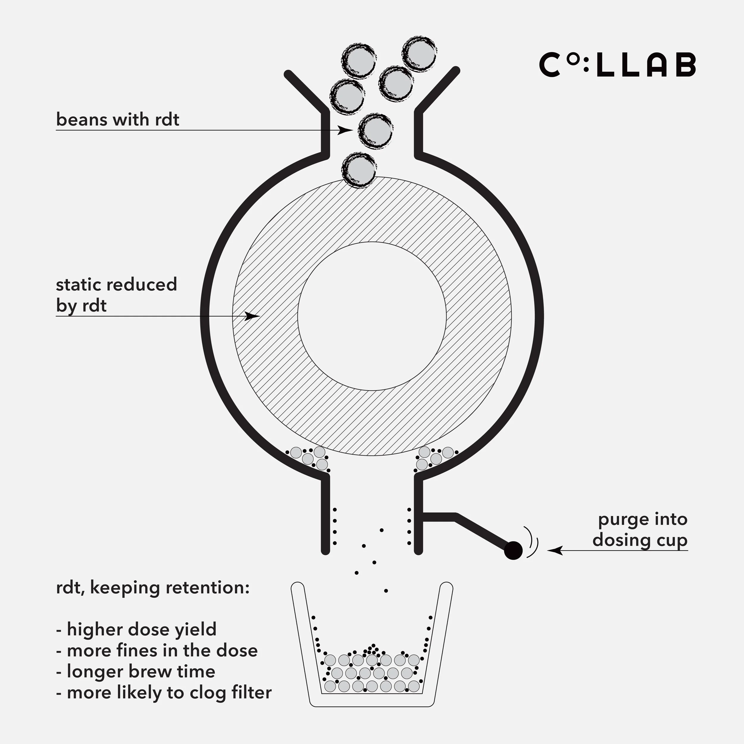 Investing in a low-retention grinder and adopting Ross Droplet Technique (rdt) are popular solutions. Rdt works by discharging static electricity during grinding. Less static cling means higher dose yield. Besides, some grinders are equipped with knocking levers or similar mechanisms to purge retention.