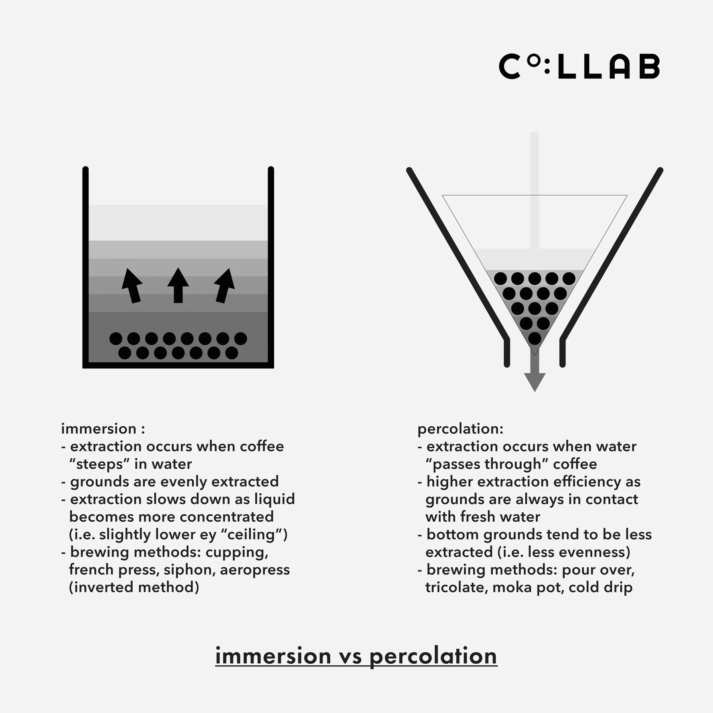 Filter brewing comprises a combination of immersion and percolation extractions. Each extracts coffee in a different way and has different impacts on extraction efficiency and evenness.