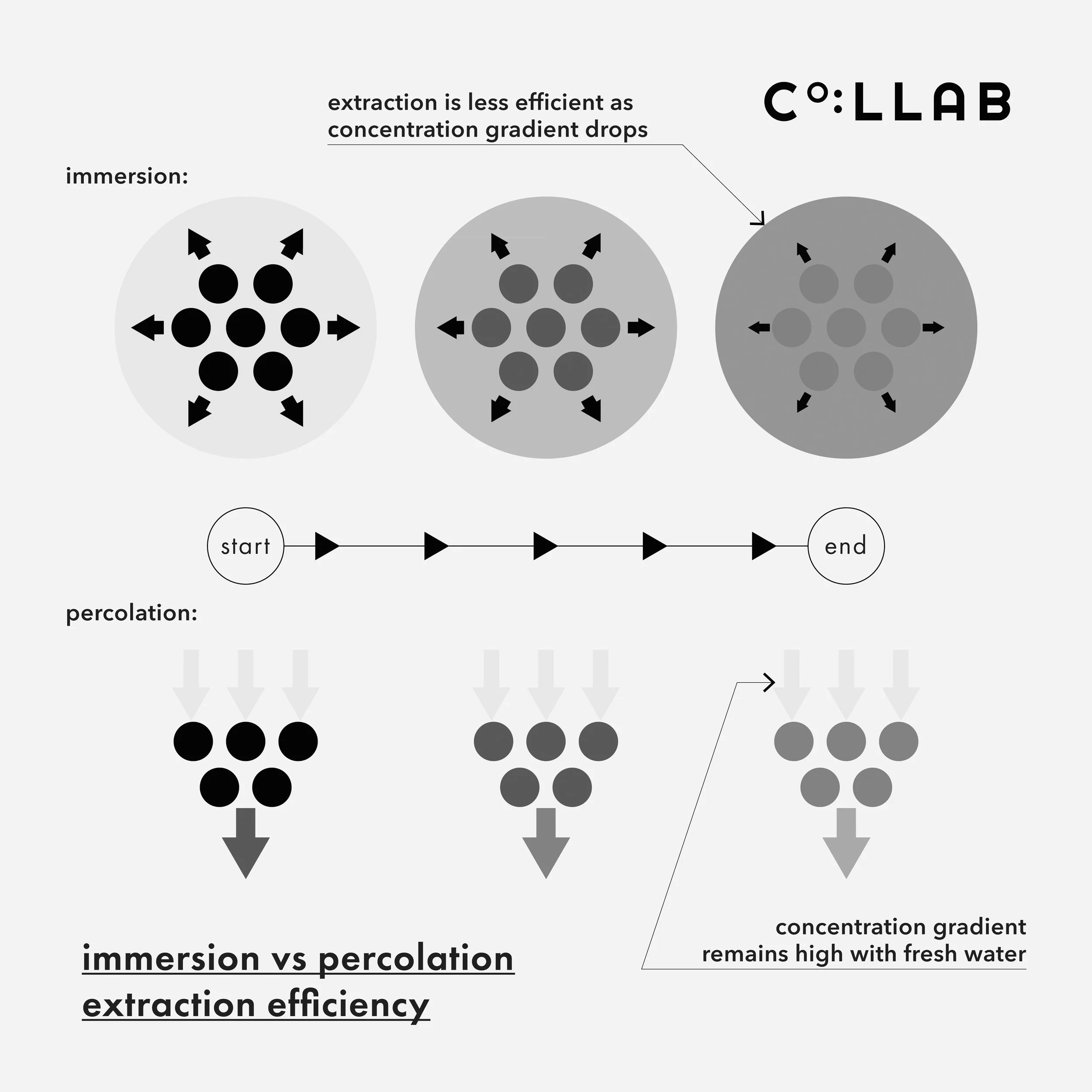 On the other hand, percolation occurs when fresh water "passes through" coffee throughout the entire pouring phase, thus allows very efficient extraction. Given the same grind size and brew recipe, percolation can possibly achieve higher extraction yield than immersion, but it also requires more skills in prep and pouring.