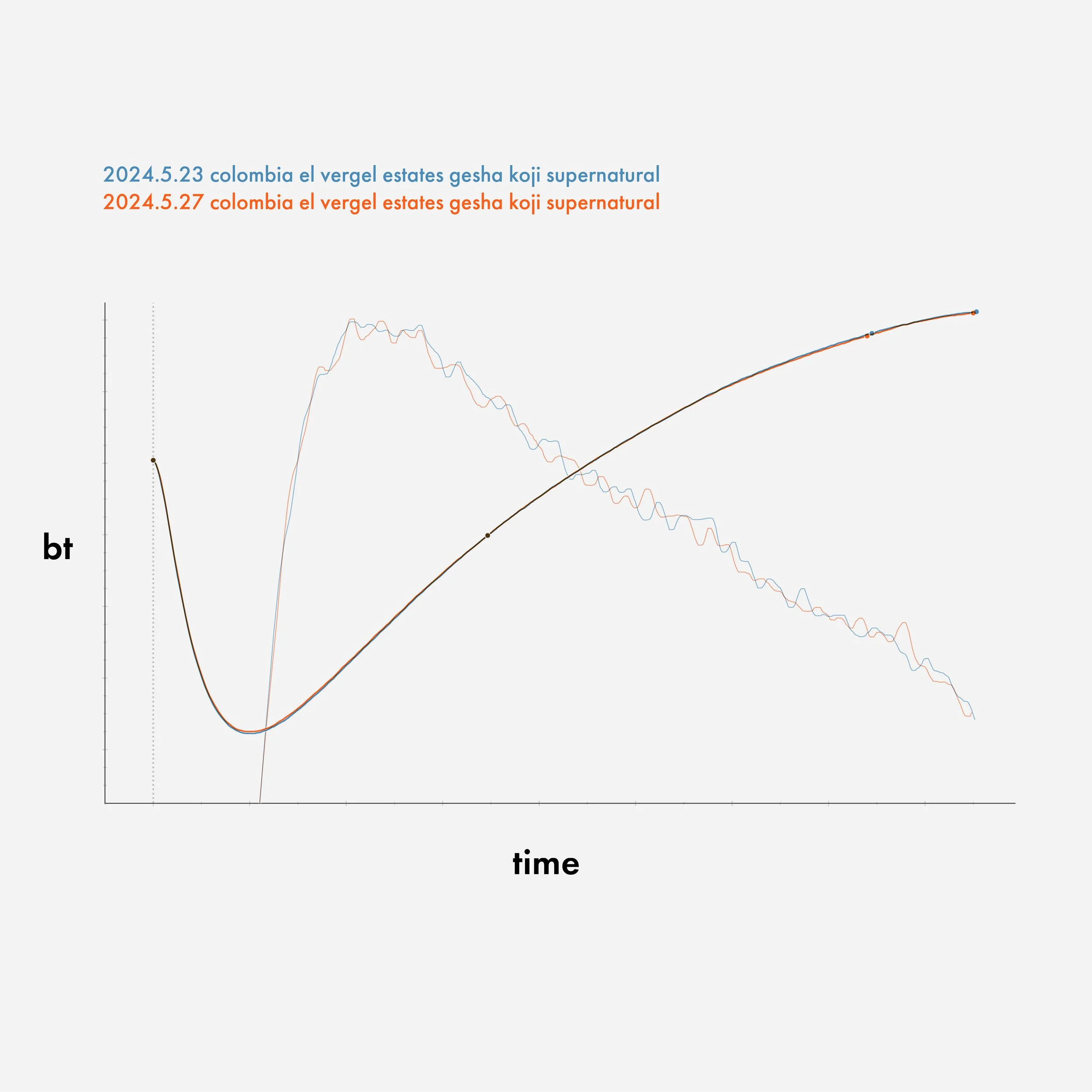 The 2nd image shows what level of consistency can be expected - two batches of same coffee, same batch size and roasted 4 days apart. To make replication possible, it takes machine tuning, good maintenance and hundreds of test batches - not a fun task at all but worthwhile to make better coffees.